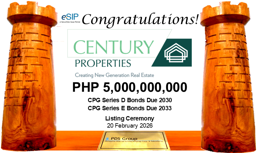 20 February 2026, Makati, Philippines – Philippine Dealing & Exchange Corp. (PDEx) welcomes the issuance of Century Properties Group, Inc.’s (CPG) PHP 5 billion Series D and Series E Fixed Rate Retail Bonds.