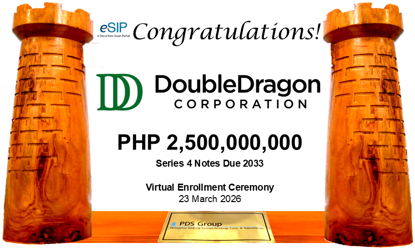 23 March 2026, Makati, Philippines – Philippine Dealing & Exchange Corp. (PDEx) welcomes the return of DoubleDragon Corporation (DD) for the enrollment of its 7-year Series 4 Notes amounting to PHP 2.5 Billion.